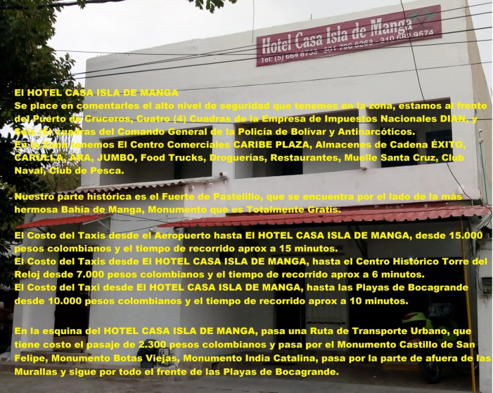 Looking for a place to spend a night after a long walk around the city? Hotel «Hotel Casa Isla de Manga» is located in Cartagena. This hotel is located in walking distance from the city center. You can stop by the bar. Free Wi-Fi on the territory will help you to stay on-line. If you travel by car, there’s a free parking zone. If you travel by car, you can park in a parking zone. The following services are also available for the guests: a massage room and a spa center. The tour assistance desk of the hotel will help you book an excursion. You can take your pet with you for the journey. Pets are allowed. There are other services available for the guests of the hotel. For example, a laundry and a safe-deposit box. In the room, for you, there is a shower and a TV. The room equipment depends on its category.